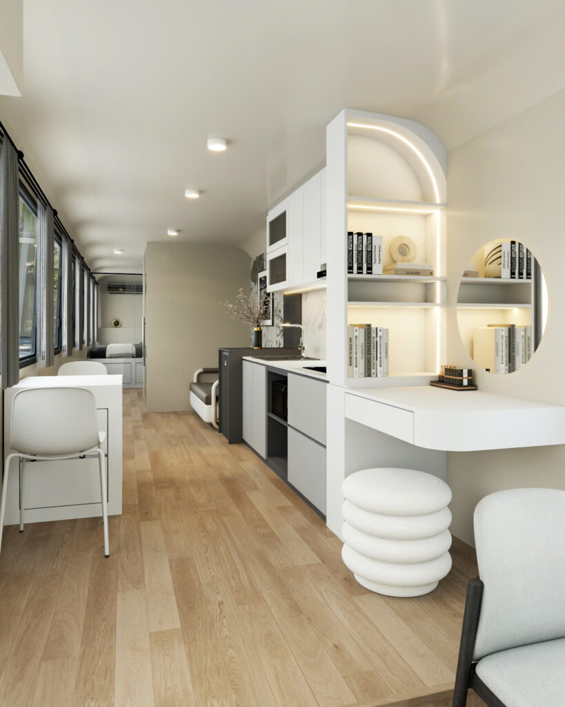🚐 Nhà xe ô tô di động Chuyển đổi xe bus, xe tải hoặc ô tô cũ thành ngôi nhà tiện nghi đầy đủ công năng: phòng ngủ, bếp, nhà vệ sinh, điều hòa, điện năng lượng mặt trời và hệ thống nước tự cấp. Phù hợp với homestay, khu cắm trại, nhà ở tạm hoặc du lịch di động.